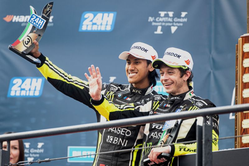 Pebalap Indonesia Sean Gelael pantas bangga karena kerja bareng dengan salah salah satu legenda balap motor Valentino Rossi ditandai dengan naik podium pada balapan 24H Dubai di Dubai Autodrome, Uni Emirat Arab, Sabtu (14/1) hingga Minggu (15/1).